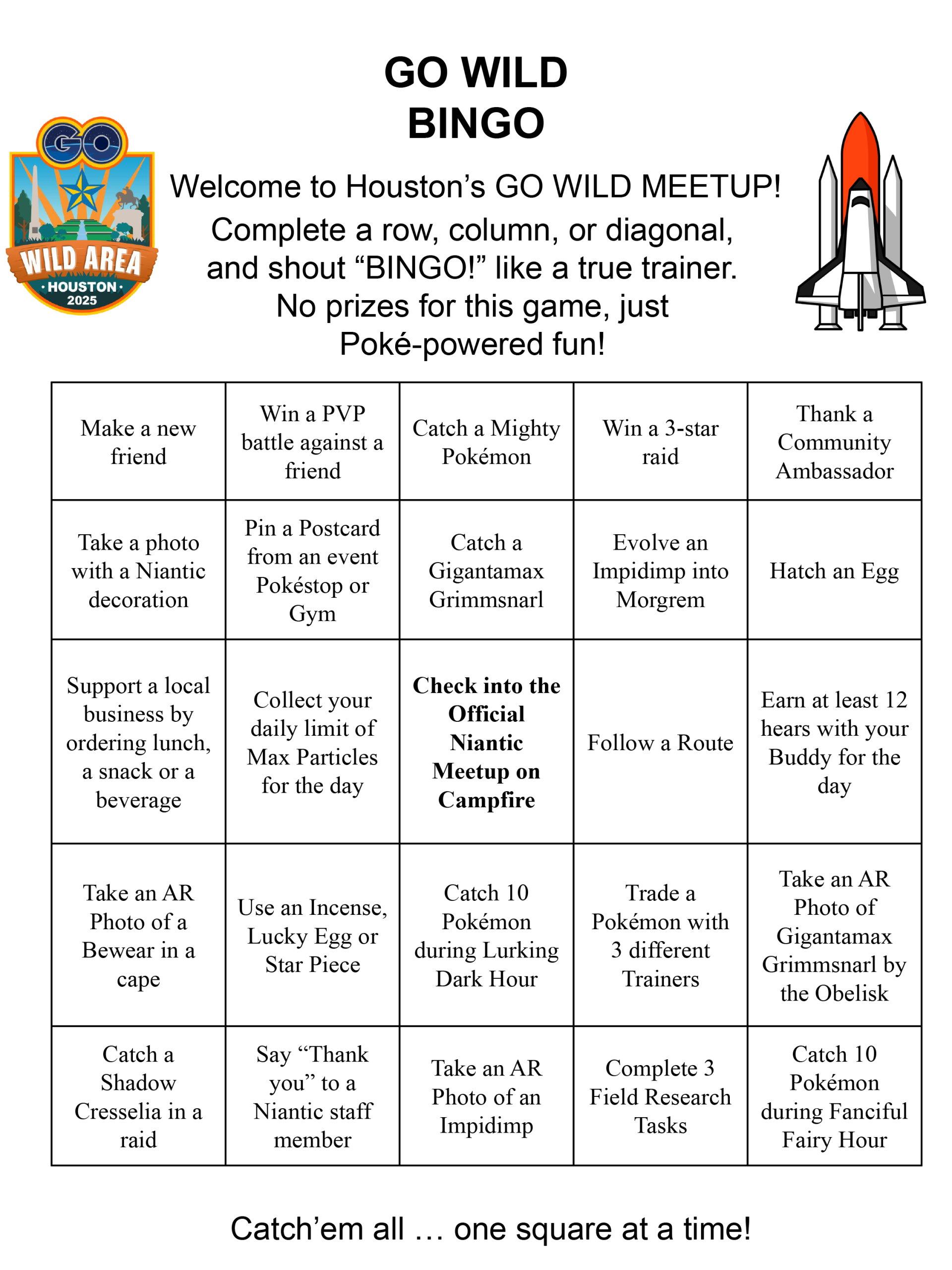 For some Poké-powered fun, complete a row, column, or diagonal, and speak with a Community Ambassador (look for the Pink Backpack Flags!) to claim your free prize!